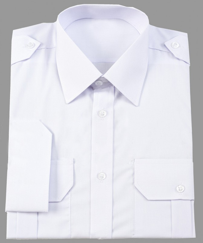 Koszula pilota z długim rękawem. Wykonana specjalnie na zamówienie. Doskonale dobrany skład tkaniny (80% bawełny/20% poliester) powoduje, że koszula nie „klei” się do pleców i jednocześnie doskonale trzyma fason. Koszule posiadają wszyte, zapinane na guziki pagony, umożliwiające nasunięcie na nie dystynkcji. W lewej kieszeni znajduje się specjalne miejsce na długopis. Specyficzny kształt klap przy kieszeniach powoduje, że koszula idealnie prezentuje się.