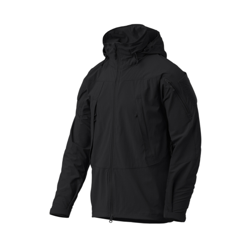 Kurtka softshellowa Trooper Mk2 to lekka, taktyczna propozycja, następca modeli Trooper i Blizzard, zaprojektowana z myślą o maksymalnej swobodzie ruchu i funkcjonalności zarówno w działaniach operacyjnych, jak i podczas aktywności outdoorowych. Wykonana jest z innowacyjnego, elastycznego materiału StormStretch (98% nylon, 2% elastan), który jest wiatroodporny, szybkoschnący i lekko rozciągliwy w dwóch kierunkach, co zapewnia komfort noszenia oraz wysoką odporność na przetarcia. Design kurtki został uproszczony – zrezygnowano ze zbędnych kieszeni, pozostawiając tylko te niezbędne: dwie piersiowe z organizerami oraz dwie na ramionach z panelami rzepowymi, co przyspiesza schnięcie materiału i redukuje wagę. Do funkcjonalnych rozwiązań należą również chowany w kołnierzu kaptur z profilowanym daszkiem, dopasowanie idealne pod plecak lub dodatkową warstwę docieplającą oraz przedłużony tył, który skutecznie chroni nerki. Całość ma na celu stworzenie skutecznego i niezawodnego elementu wyposażenia, który stawia na prostotę, dostępność najważniejszych elementów i nie ogranicza ruchów użytkownika.