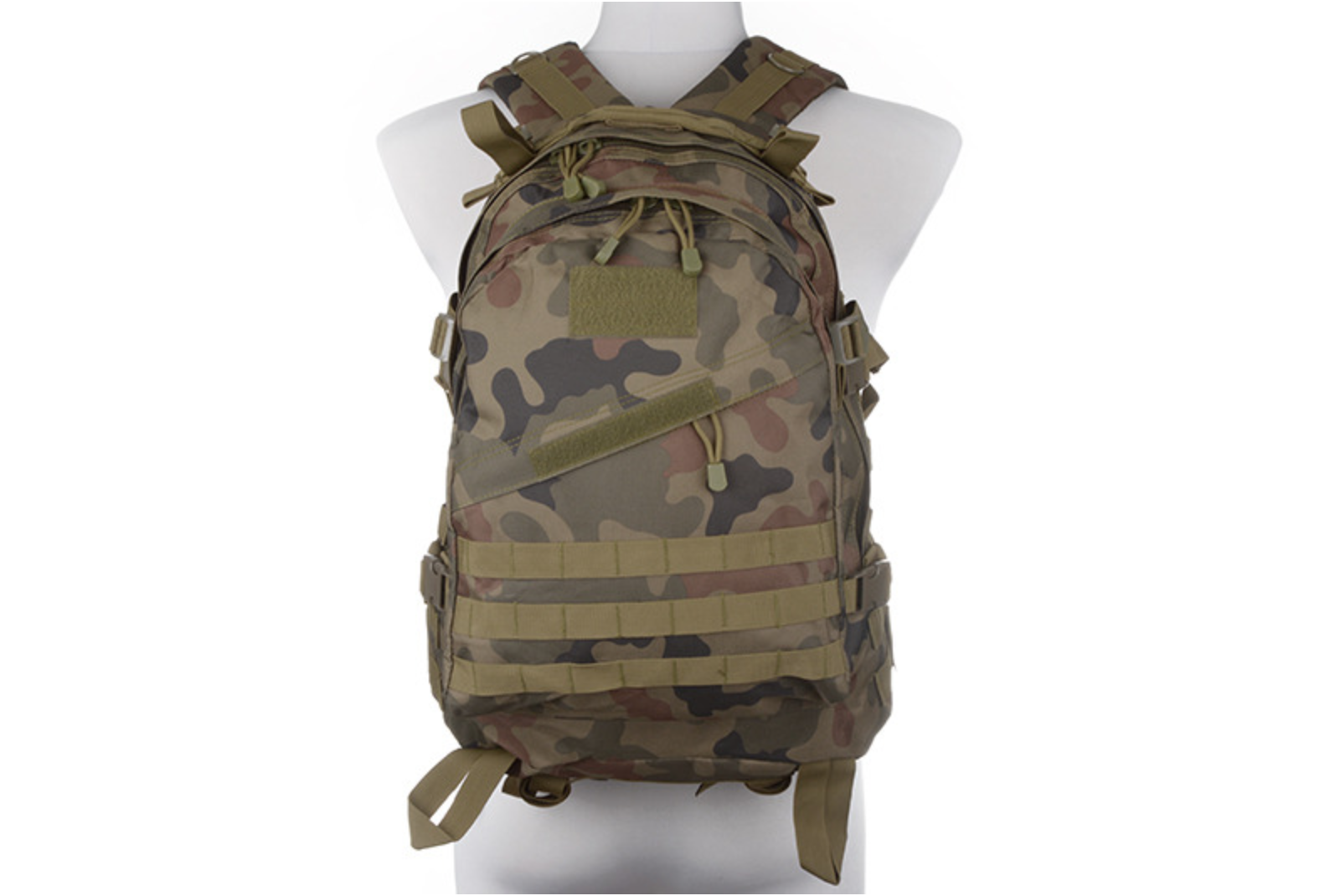 Uniwersalny plecak taktyczny, który sprawdzi się zarówno na airsoftowym polu walki, jak i w codziennym użytkowaniu miejskim, czy na wypadzie turystycznym. Plecak posiada pojemną komorę główną z kieszenią na wkład hydratacyjny, zamykaną na dwubiegowy zamek błyskawiczny oraz dwie dodatkowe kieszenie przednie – również wyposażone w zamki błyskawiczne.